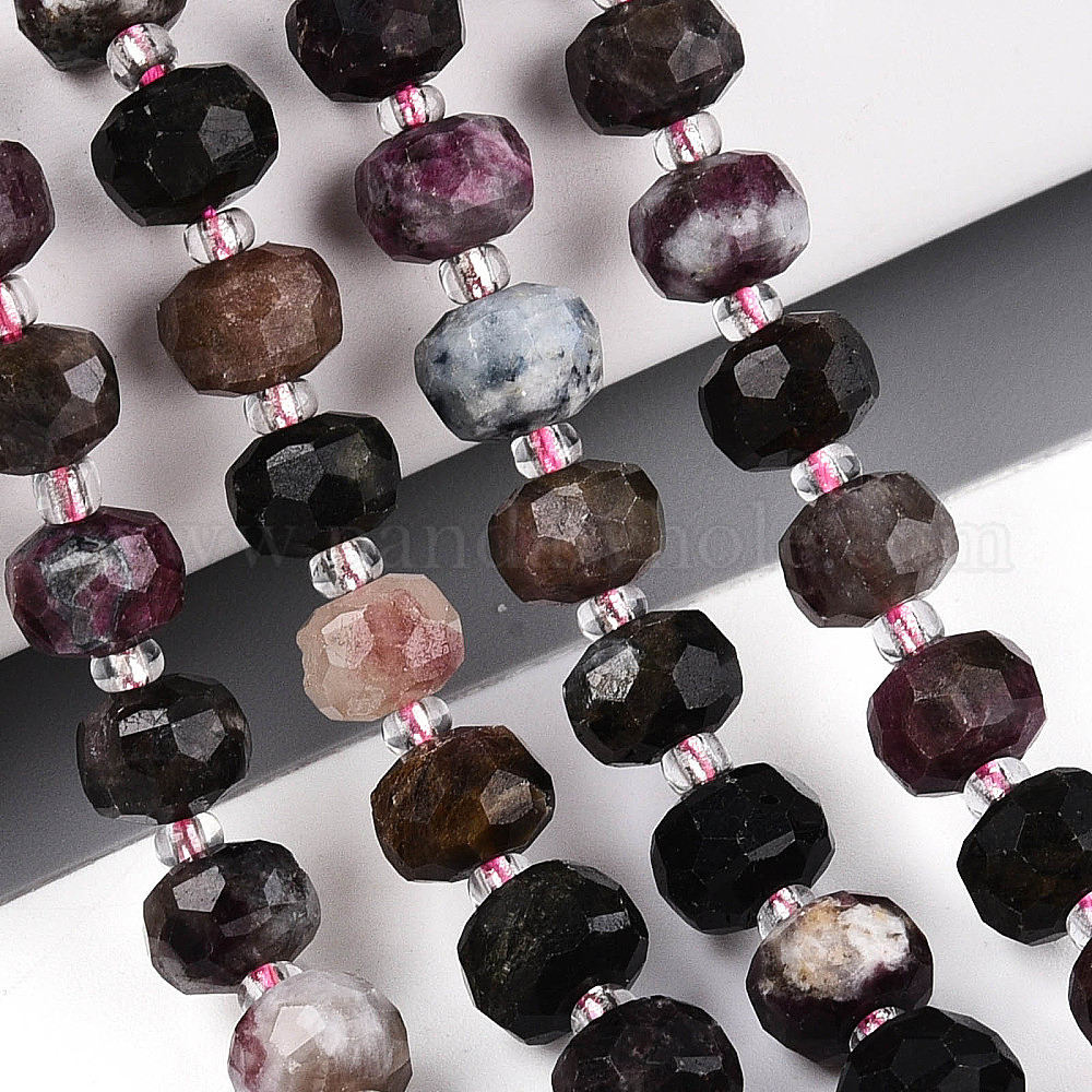 Натуральные разноцветные турмалиновые бусины, с бисером, граненые, рондель