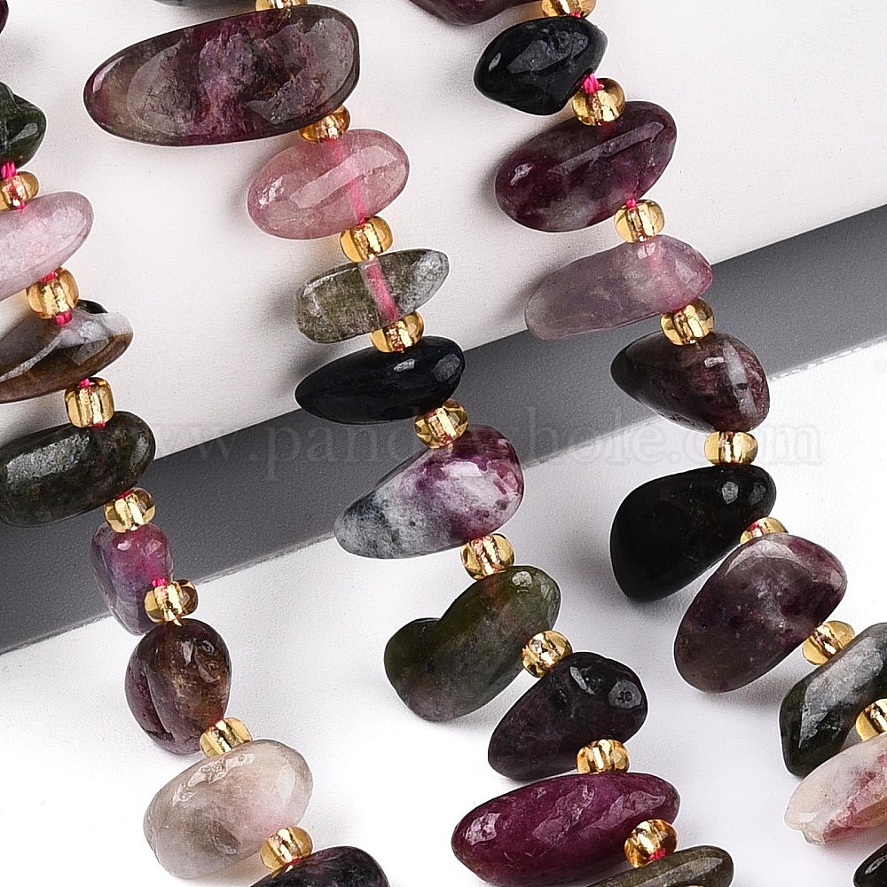 Нити из натуральных разноцветных турмалиновых бусин, самородки, Топ пробуренной, упавший камень, с бисером