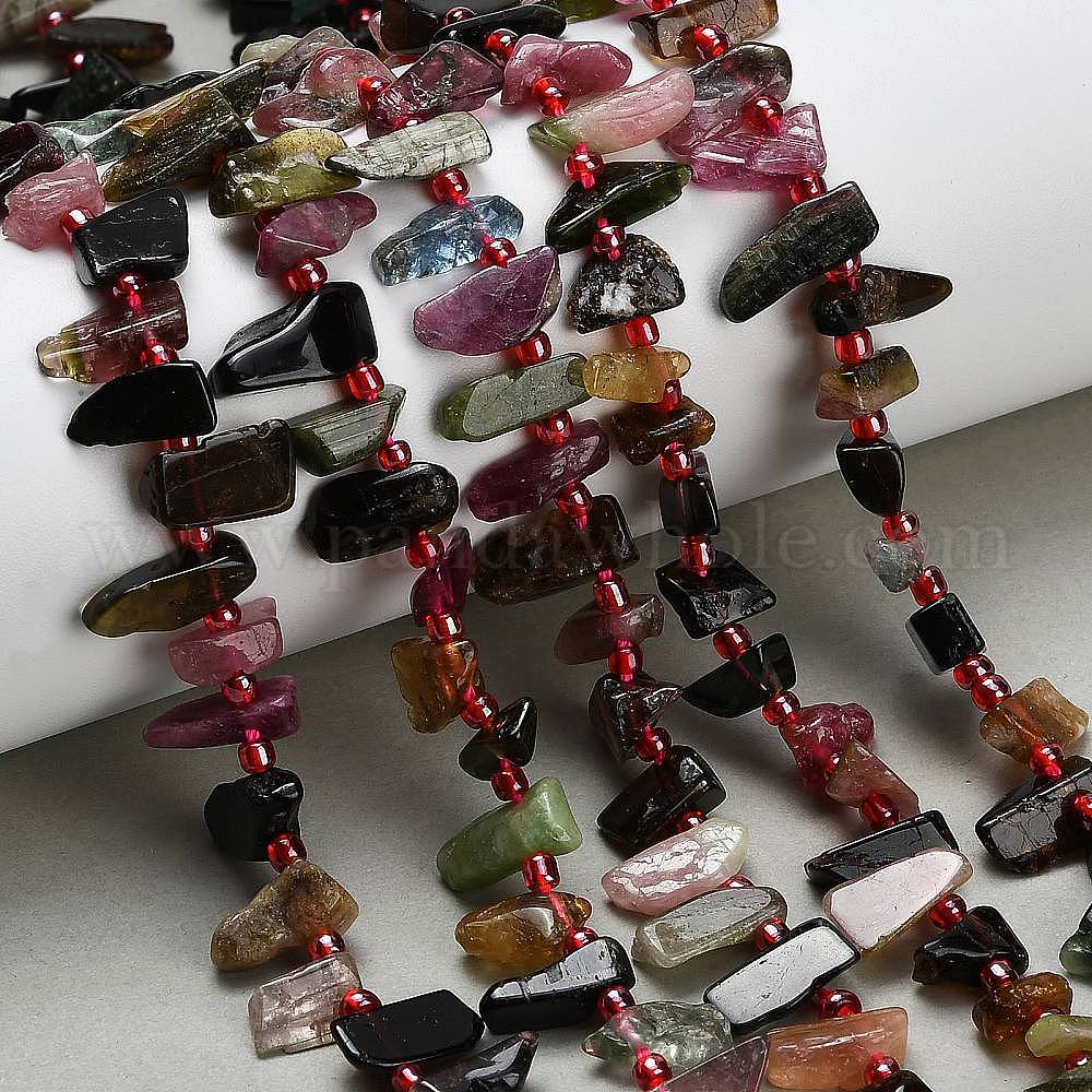 Нити из натуральных разноцветных турмалиновых бусин, чип, с бисером, класс А, Топ пробуренной