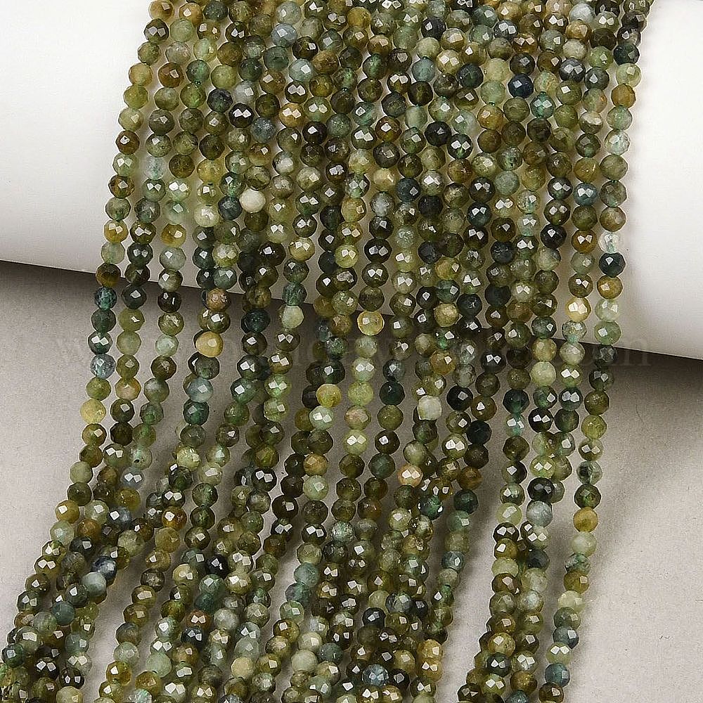 Бусы из натурального зеленого турмалина, круглые, граненые