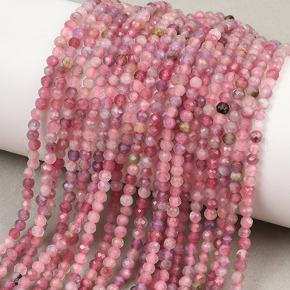 Натуральный розовый турмалин бисер нитей, граненые, круглые