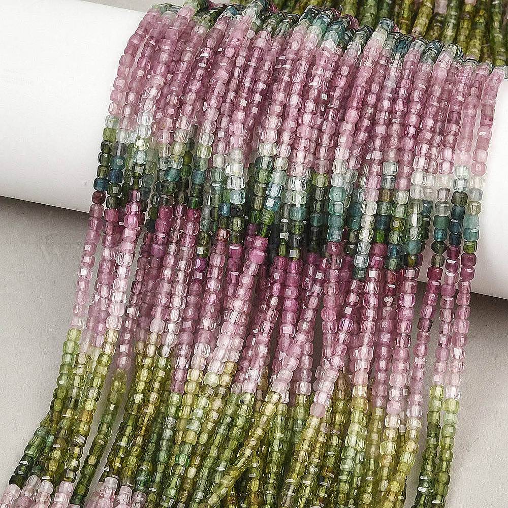 Нити из натуральных разноцветных турмалиновых бусин с градиентным цветом, граненые настольные бусины в форме куба