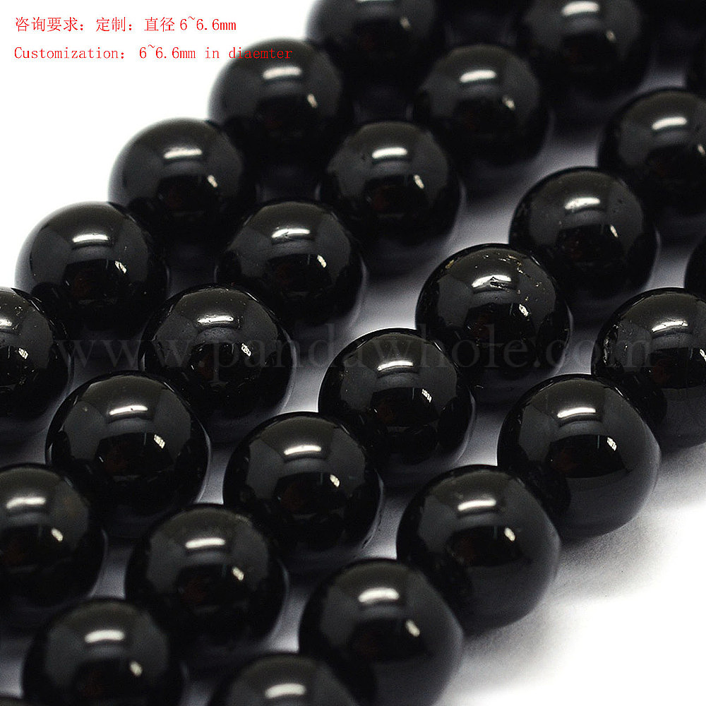 Натуральный черный турмалин бисер нитей, класс А, круглые