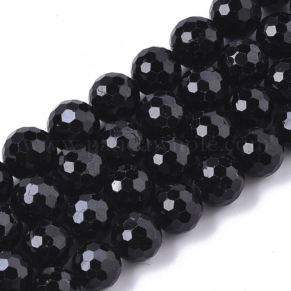 • Турмалин Натуральный черный турмалин бисер нитей, граненые, круглые, 8 мм, отверстие : 1 мм, около 51 шт / нитка, 14.96 дюйм (38 см)