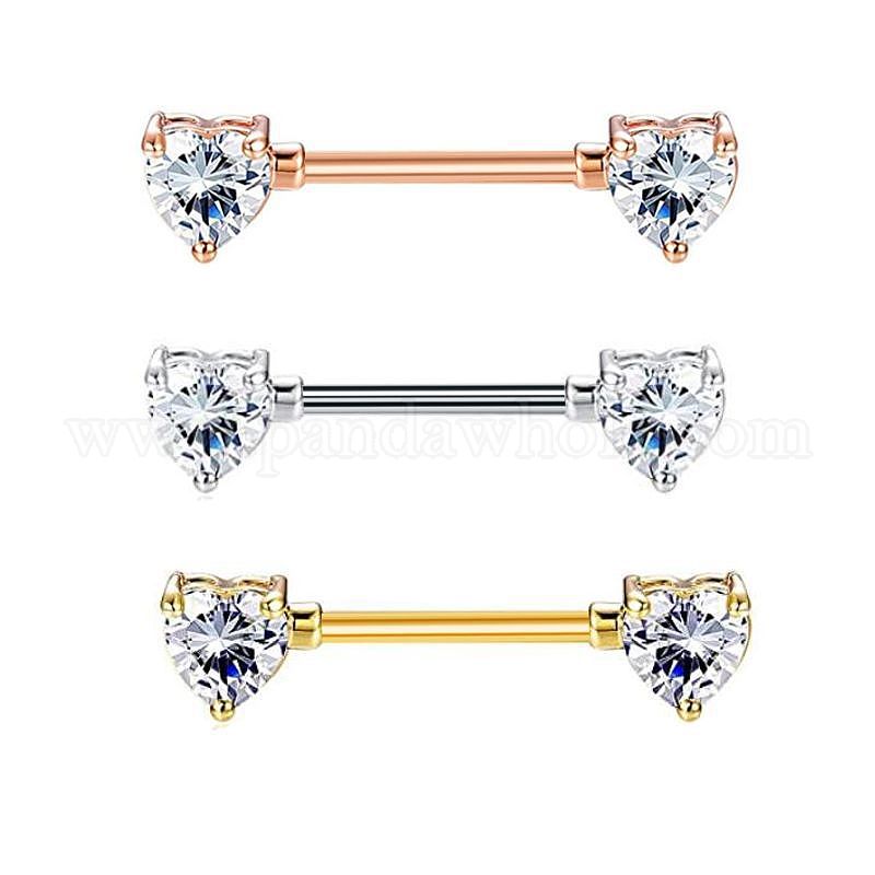 304 Кольца для сосков в форме сердца из нержавеющей стали с прозрачным кубическим цирконием, прутики для пирсинга сосков