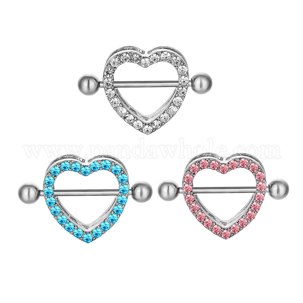 316 Кольца для сосков в форме сердца из хирургической нержавеющей стали со стразами, прутики для пирсинга сосков, цвет нержавеющей стали (02Z1ZJ)