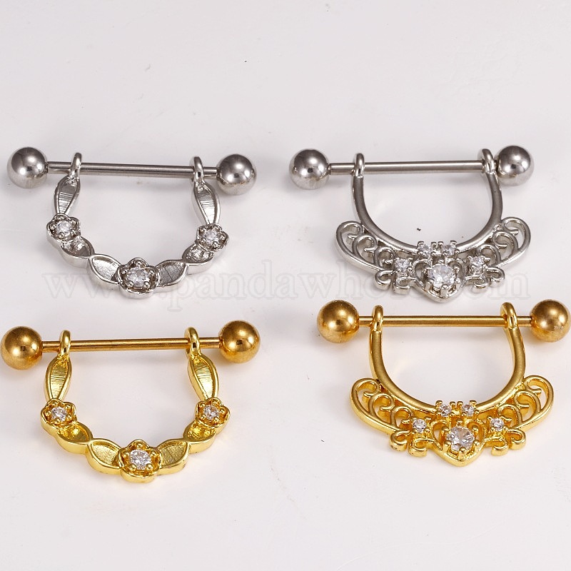 Кольца для сосков из латуни с прозрачным кубическим цирконием, сосок стремя