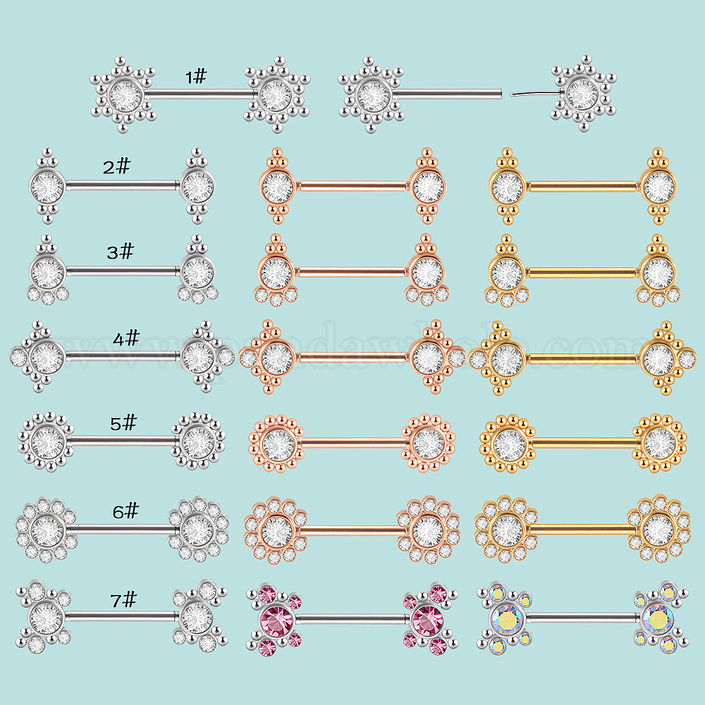 304 Кольца для сосков из нержавеющей стали со стразами (02Z2EX)