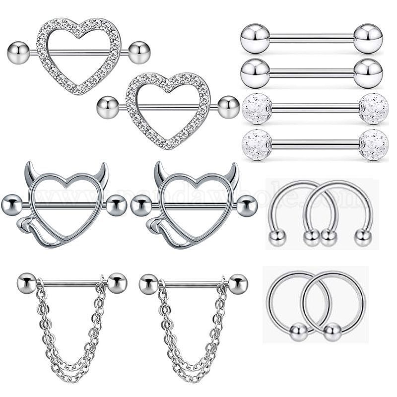 304 наборы колец для сосков из нержавеющей стали, булавки для пирсинга сосков