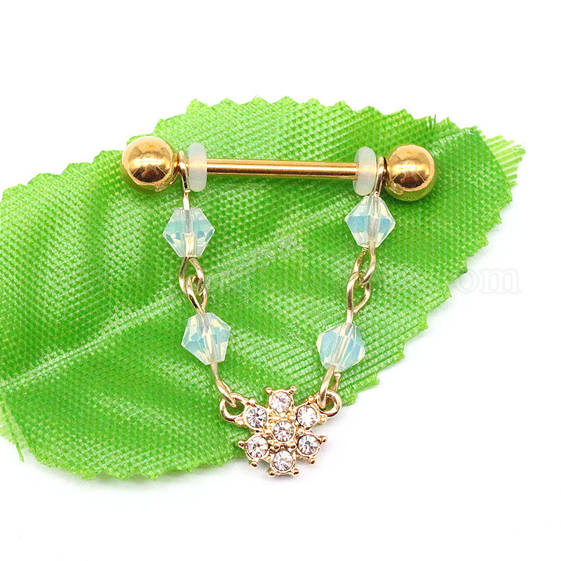• Золотой 316l Кольца для сосков из хирургической нержавеющей стали с прозрачным кубическим цирконием, с цветка сплава, золотые, 14 мм