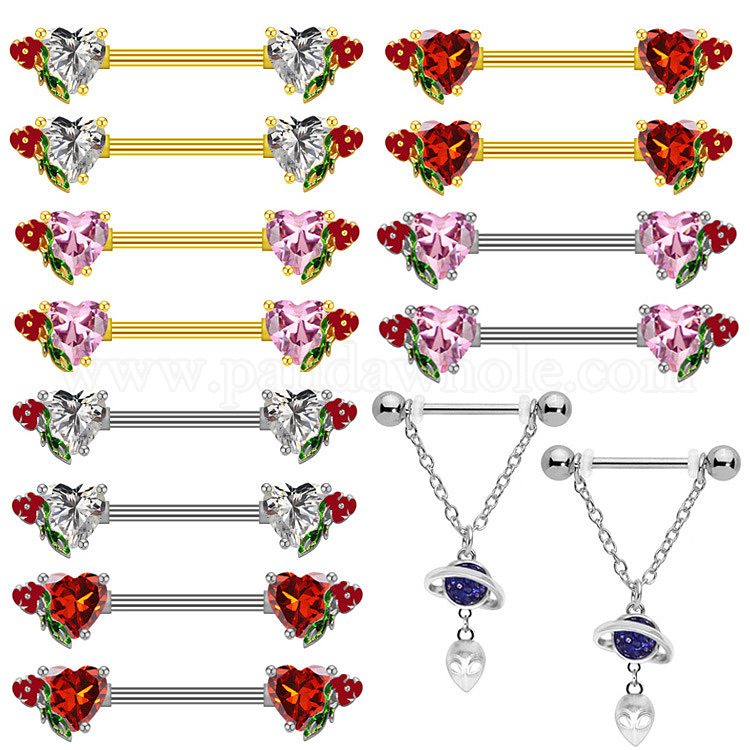 316l хирургические кольца-гвозди для сосков из нержавеющей стали с кубическим цирконием