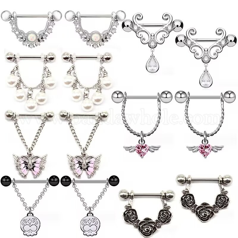 • Бабочка 316l хирургическая нержавеющая стальная скоба для соска, цвет нержавеющей стали, бабочка, 14 мм, штифты : 1.6 мм
