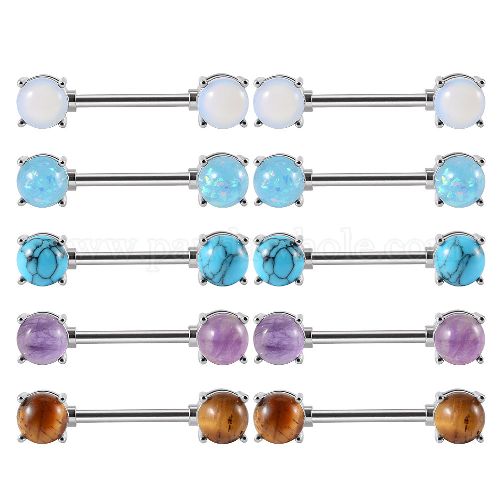 304 полукруглые штанги для сосков из нержавеющей стали с драгоценными камнями, цвет нержавеющей стали