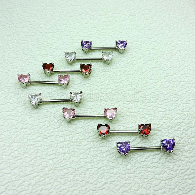 Кольца для штанги из кубического циркония в форме сердца, с 316 хирургическими штифтами из нержавеющей стали, цвет нержавеющей стали