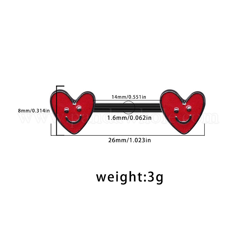 316l Кольца для сосков в форме сердца из хирургической нержавеющей стали с эмалью, чёрные