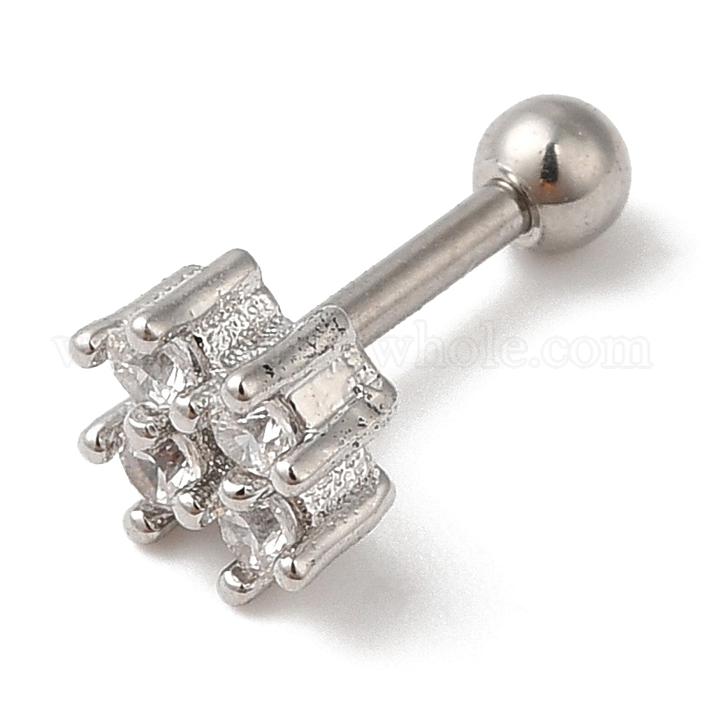 Латунное квадратное кольцо для губ с фианитами, 316 пирсинг из нержавеющей стали