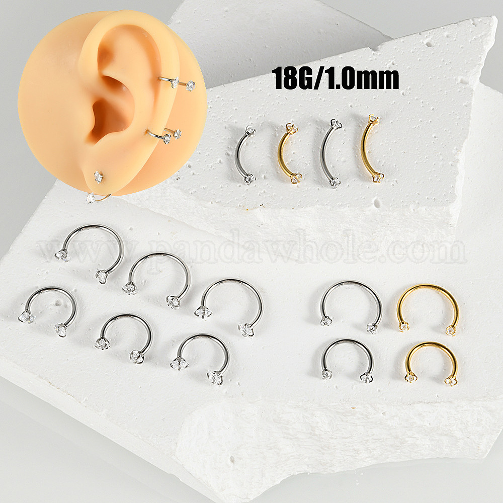 304 лабреты из нержавеющей стали с прозрачным кубическим цирконием, хрящевые серьги