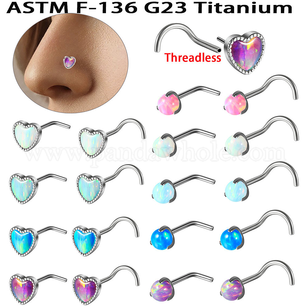 G23 кольца для носа из титана и искусственного опала в форме рыбы/L, круглые/сердечные украшения для пирсинга носа для женщин, цвет нержавеющей стали