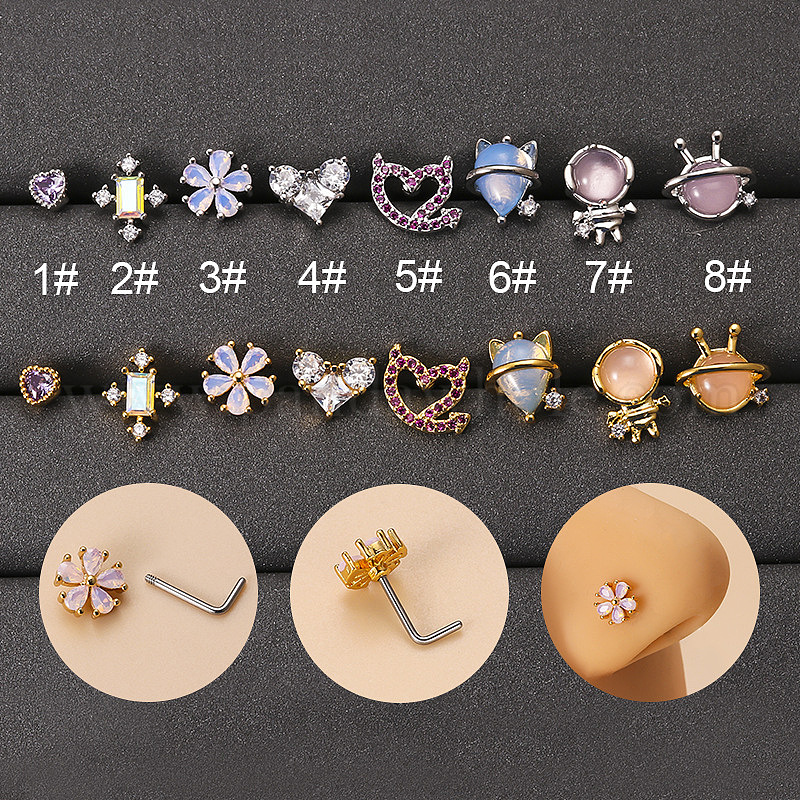 316l хирургические кольца для носа из нержавеющей стали с микропрорезью из кубического циркония в форме буквы L