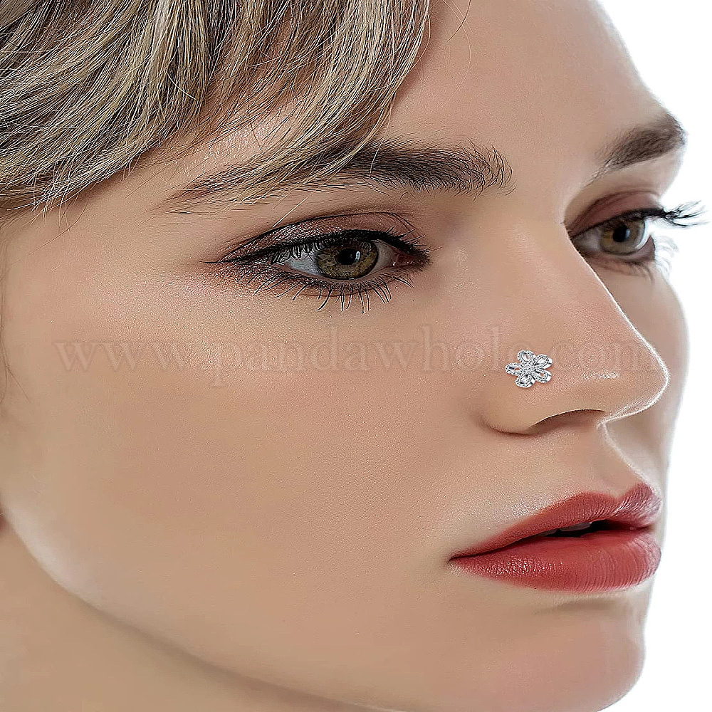 316l Хирургические кольца для носа из нержавеющей стали с микропаве из прозрачного кубического циркония в форме цветка