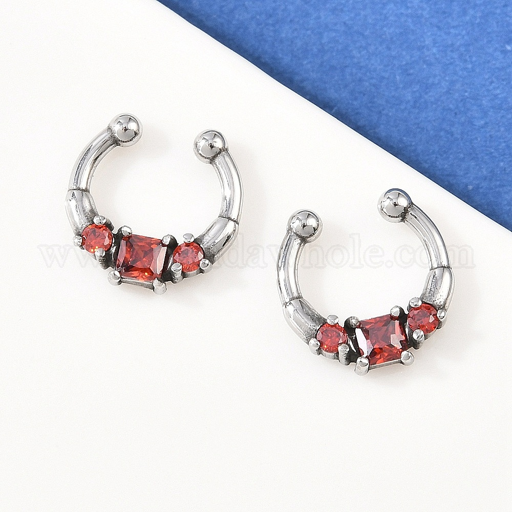 316 серьги-кольца для носа из нержавеющей стали с красными кубическими циркониями
