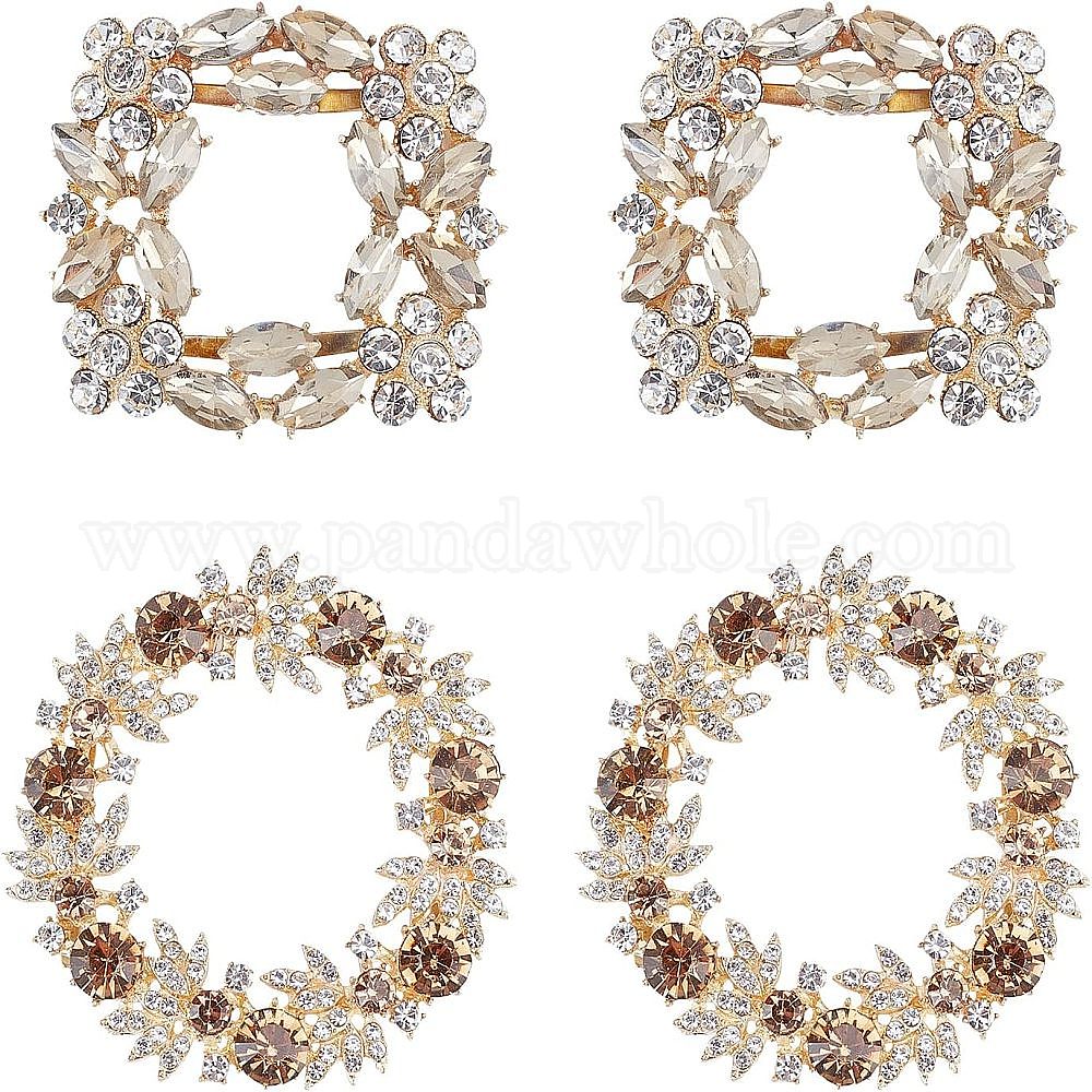 4шт 2 стиль литые туфли пряжки клипсы, с кристально горный хрусталь, кошелек аппаратные аксессуары, квадратный и круглый