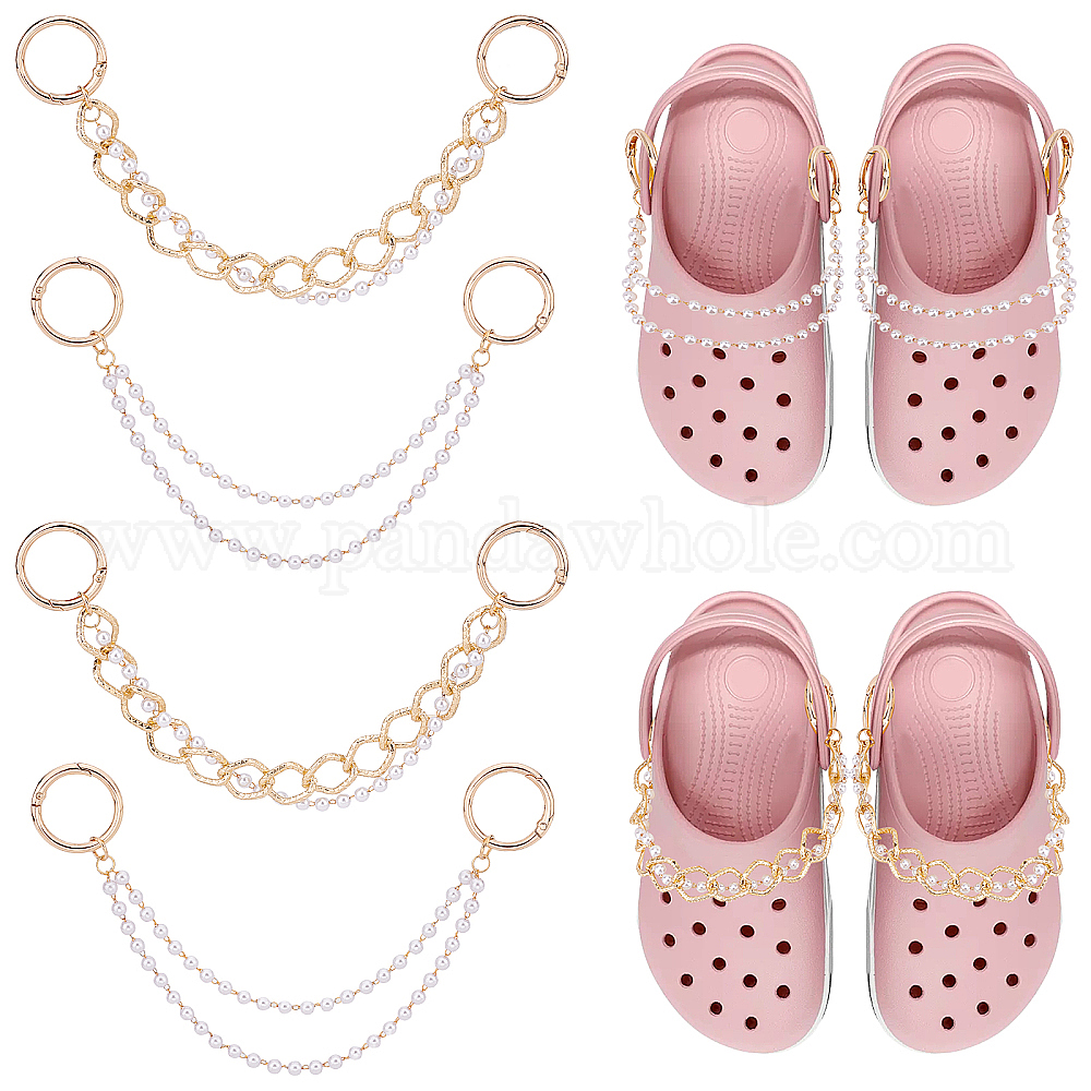 2набор из двухрядных цепочек с подвесками для обуви из АБС-пластика с жемчужными бусинами, с литыми пружинными кольцами, для украшения обуви своими руками