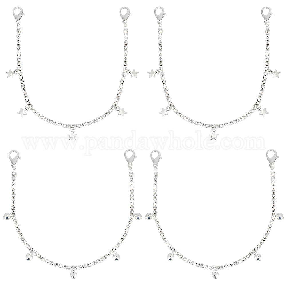 4 шт 2 стиль сплава горный хрусталь обувные цепи, с подвеской в виде звезды/сердца и застежками-карабинами, для аксессуаров украшения обуви