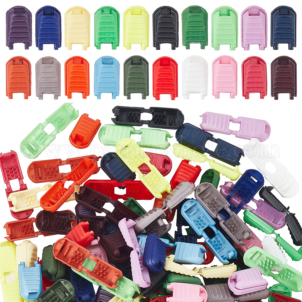 нейлоновые зажимы для концов шнура: ширина около 12мм, 40 мм длиной, толщиной 6.5 мм , отверстие : 5x2 мм, сгиб: 21x12x11.5 мм, 18 цветов, 6 шт / цвет, 108шт;