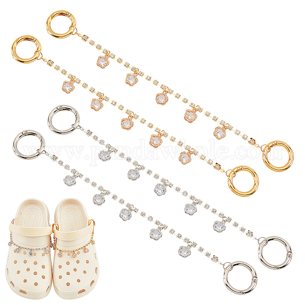 Цепочка для украшения обуви из прозрачного кубического циркония из цветочного сплава, цепочка со стразами и пружинными кольцами
