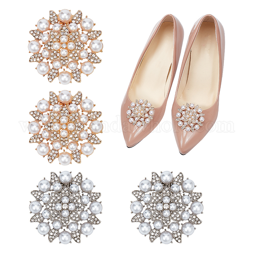 2 пары 2 цвета сплава страз украшение для обуви, с имитацией жемчуга из АБС-пластика и съемной железной пряжкой, цветок