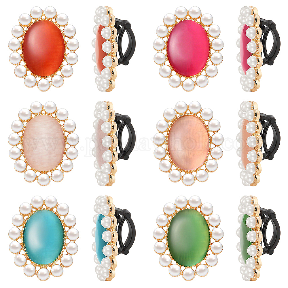 12шт 6 цвета овальные съемные украшения для обуви «кошачий глаз» и имитация жемчуга, с пряжкой из сплава и пластика