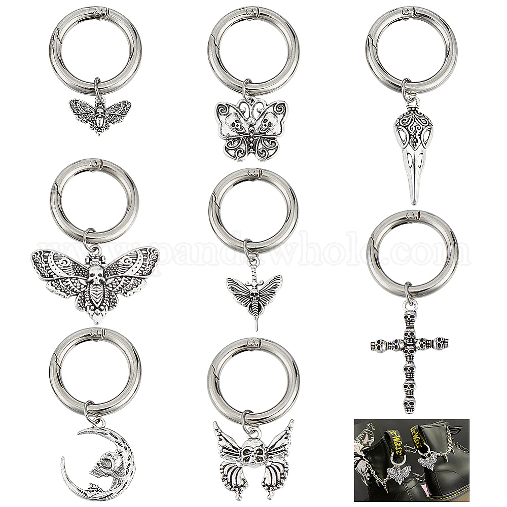 16 шт. 8 стиль украшения обуви из сплава крест/бабочка/луна, Чистка Подвески, с пружинными кольцами ворот