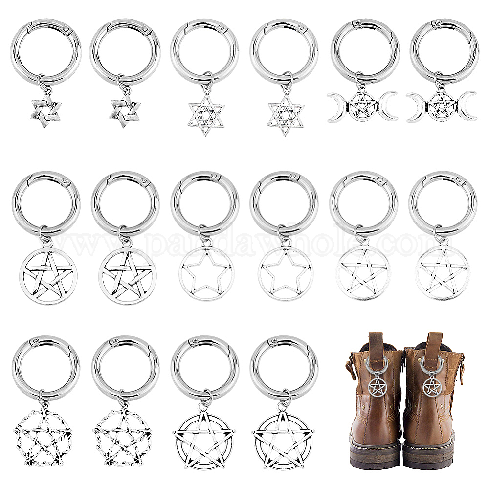 16шт. 8 стиль пентакль и тройная луна и звезда Давида подвески для обуви из сплава, с пружинными кольцами ворот