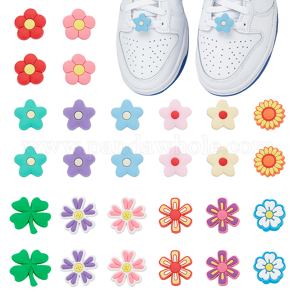28 шт 14 стили цветок/клевер ПВХ пластиковые шнурки подвески, съемные пряжки для обуви