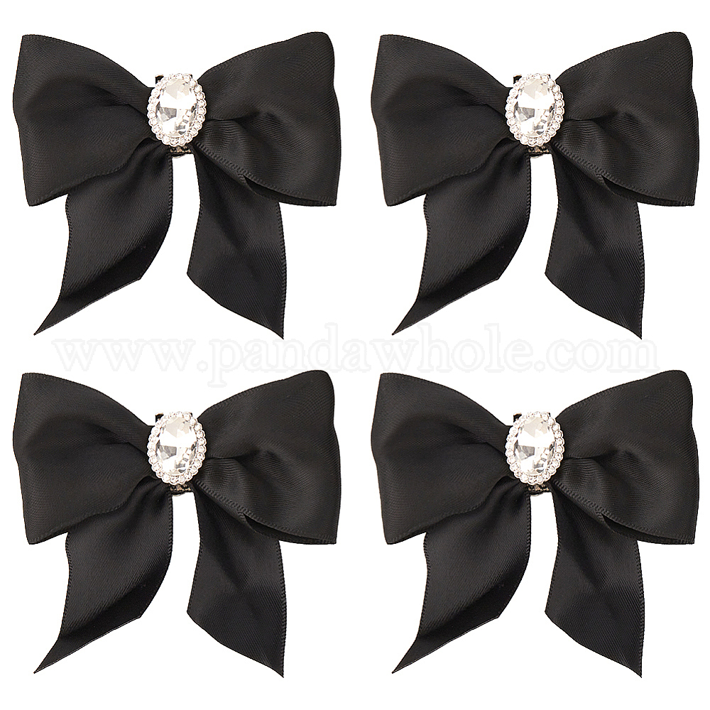 • Черный Украшения для обуви из полиэстера с бантом, зажимы для пряжки из сплава, чёрные, 63.5x77x17 мм