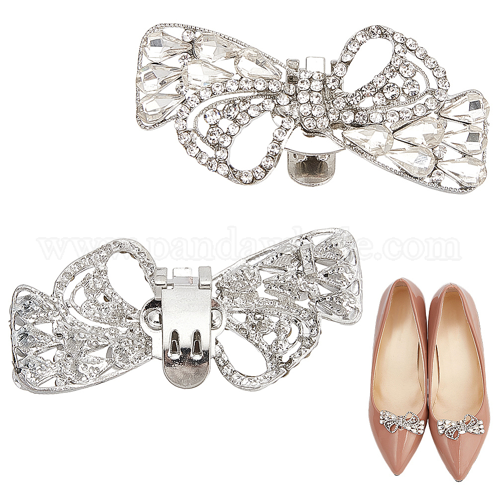 2 шт. украшения для обуви из сплава со стразами в виде банта, съемные пряжки для обуви