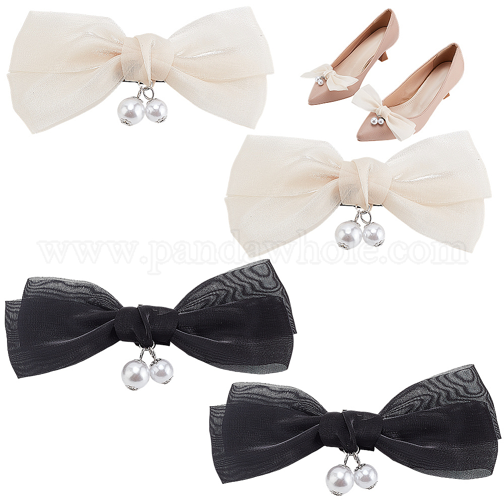 2 пары 2 цвета пряжки для обуви из сплава, съемное украшение для обуви из органзы, бантом