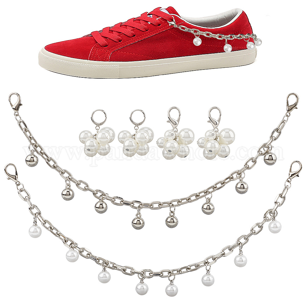 2 шт. 2 стили, украшение для обуви из сплава, цепочка, с застежками-карабинами и круглой подвеской, с 4шт 2 стилями АБС-пластика, имитация жемчуга, подвесные украшения
