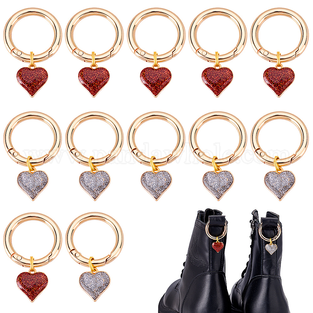 12 шт 2 стили сплав сердце обувь подвески, с литыми пружинными кольцами