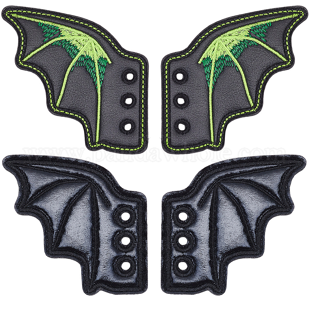• Зелено-Желтый 2 пары 2 стили пряжка для обуви из искусственной кожи на Хэллоуин для самостоятельного изготовления аксессуара для обуви, крылья, зеленый желтый, 66~70x75~76.5x2 мм, отверстие : 4 мм, 1 пара / стиль
