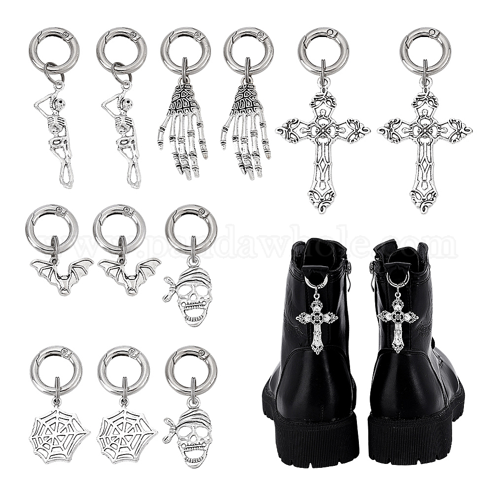 12 шт 6 стили сплав обувь подвески, с литыми пружинными кольцами