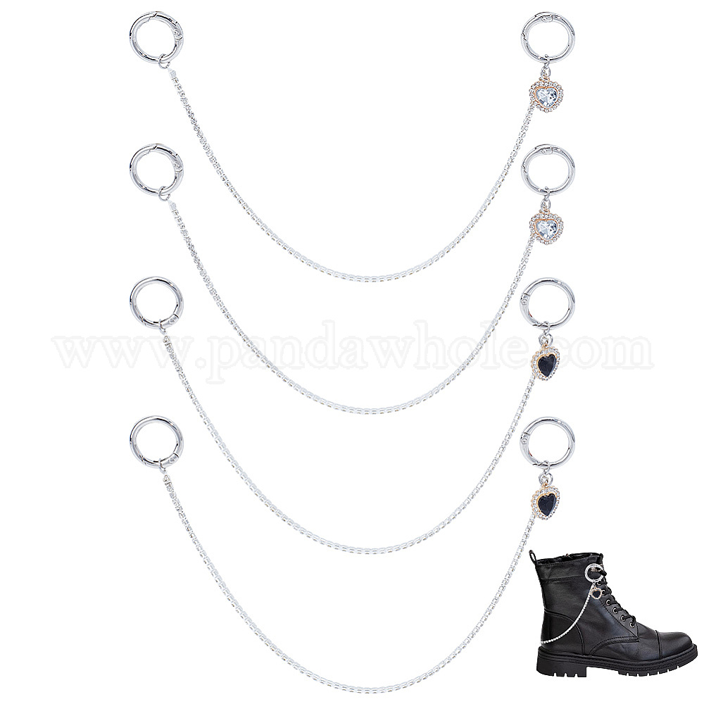 4 шт. 2 стили сердце латунные стразы ремешок для обуви цепи, с литыми пружинными кольцами