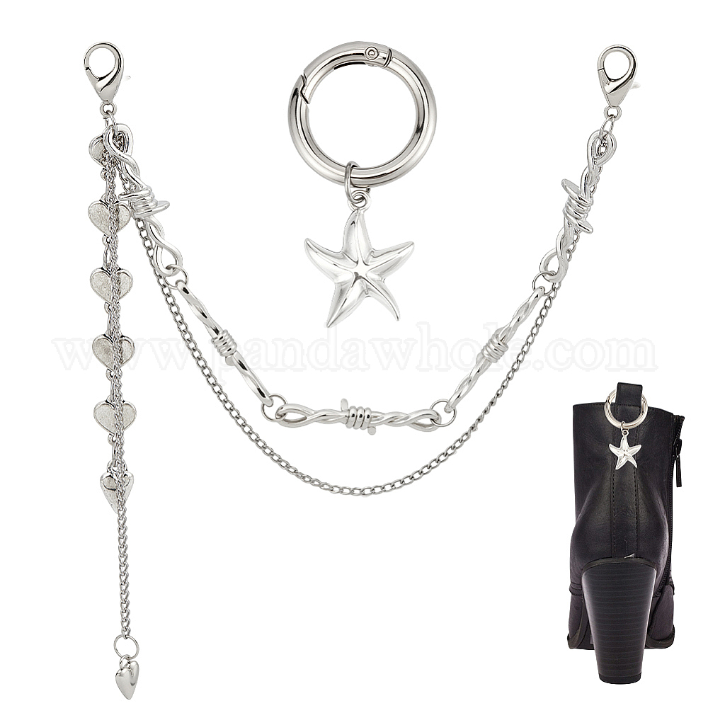 4 шт. 2 стили железная панцирная цепь с звеньями из сплава с узловыми звеньями цепи с ремешком для обуви, с подвесками в виде сердца и морской звезды и кольцами-пружинками