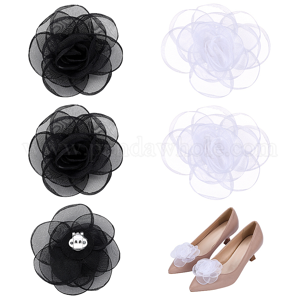 4шт 2 цвета железные пряжки для обуви, с цветком из органзы и шифона
