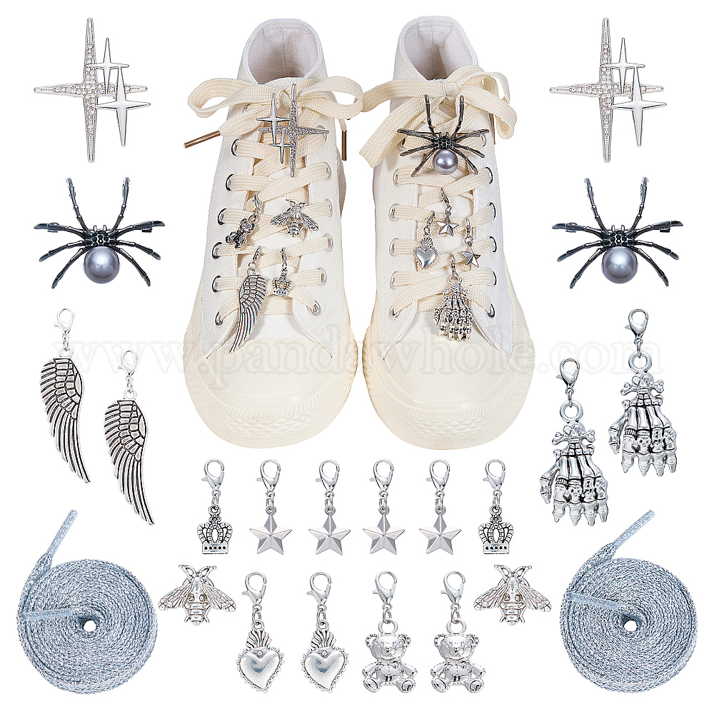 20шт. из сплава и 316 нержавеющей стали, подвески для обуви, броши из сплава и блестящие полиэстеровые шнурки, разнообразные