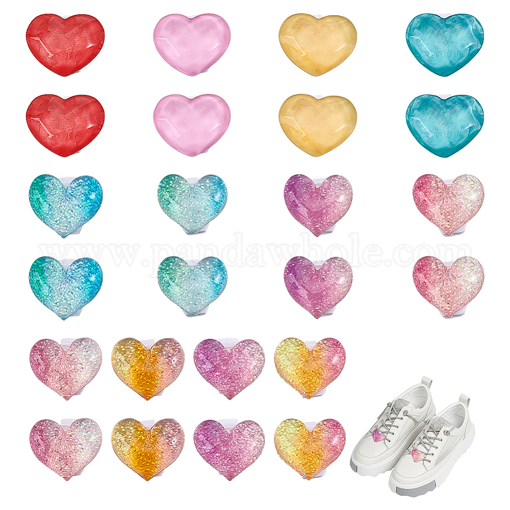 24 шт. 12 цвета сердечко прозрачная смола блестки пудра пряжки для обуви клипсы, с пластиковыми зажимами