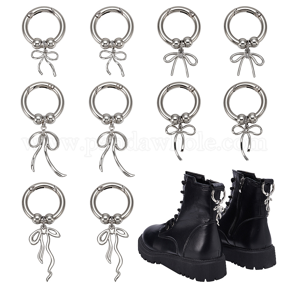 10 шт. 5 стили бантовые подвески для обуви из сплава, с литыми пружинными кольцами