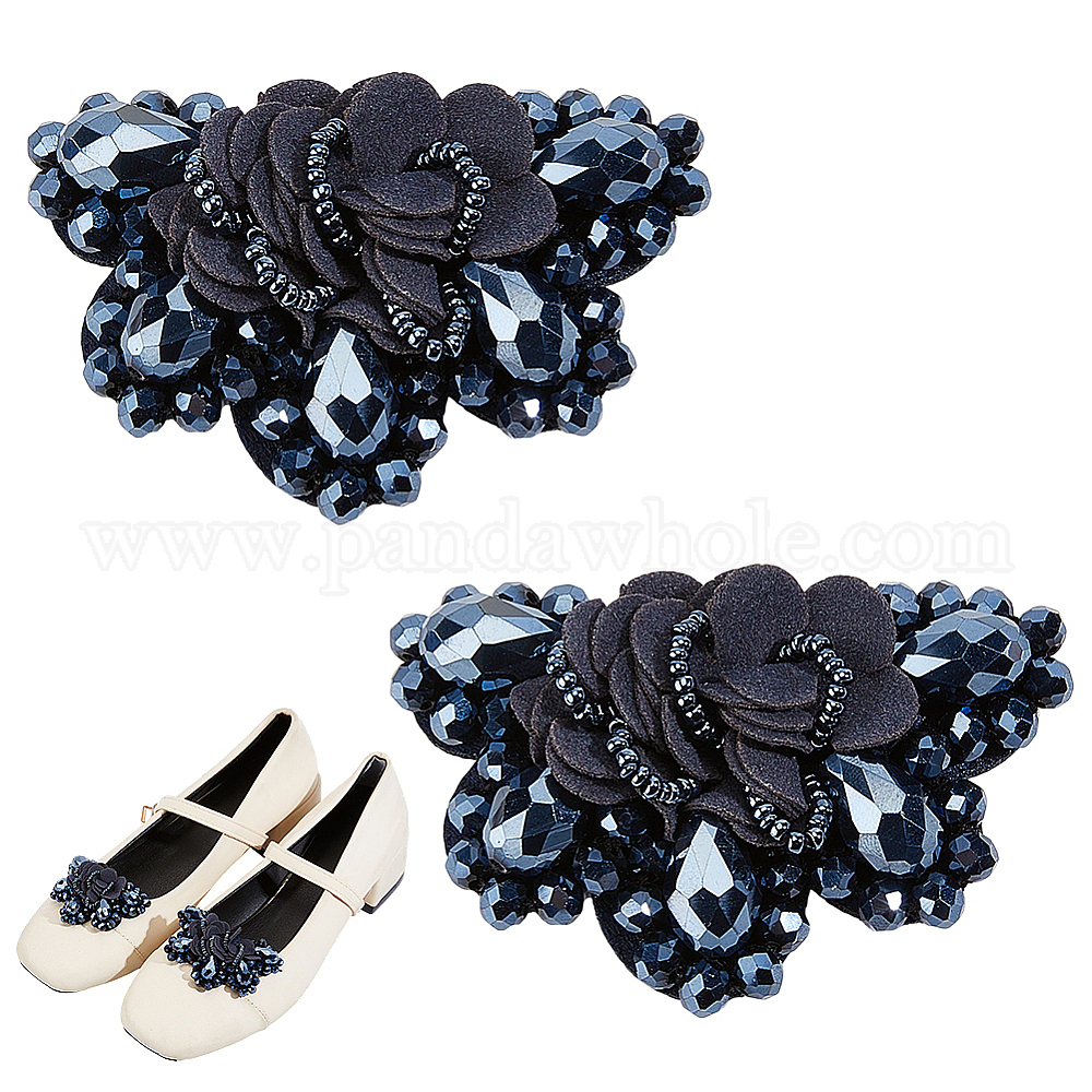 • Светлый Стально-синий Пряжки для обуви из стекла, ткани и железа, цветок, платина, светло-стальной синий, 40.3 мм