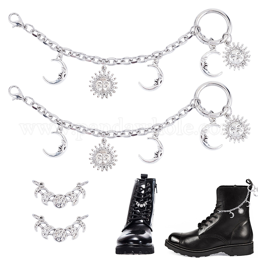 4 шт 2 стили сплав обувь подвески, Вс & луна, с карабинами из сплава и пружинными кольцами